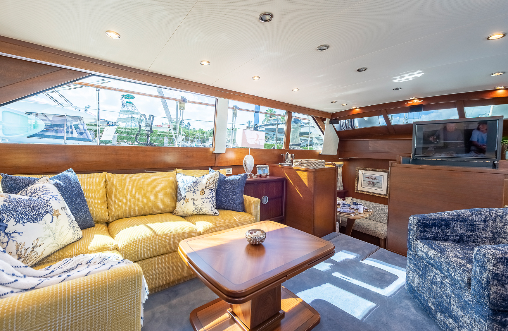 Yacht Interior Design. Outfitted this 56′ Wooden Chris-Craft with custom soft goods, custom built furniture as well as accessories for the galley, salon and staterooms.