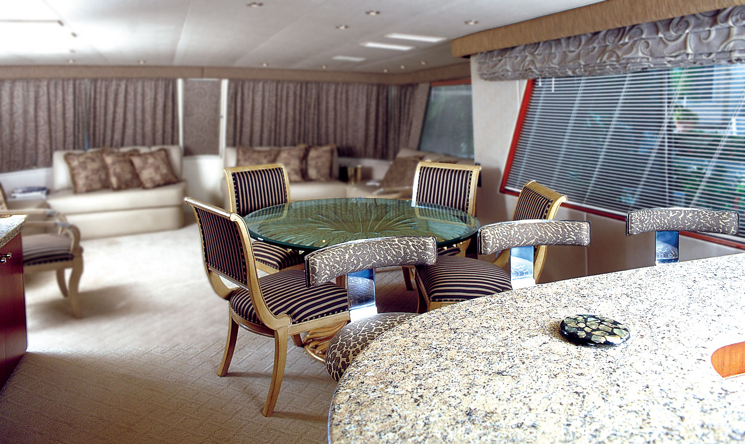 Yacht refit and repair of this 56′ Hatteras Motor Yacht. Outfitted with custom furnishings, furniture and accessories.