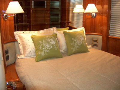 Custom yacht interior. Outfitted this 80′ Azimut Motor Yacht with custom furnishings, furniture and accessories.