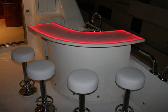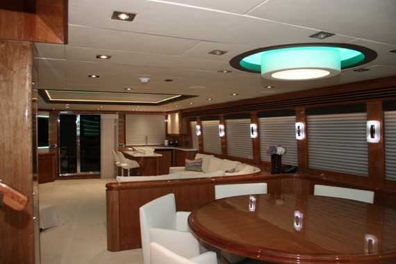 Yacht Interior Design. Outfitted this 95′ Hargrave Motor Yacht with custom furnishings, furniture and accessories including custom LED lighting inside and out.
